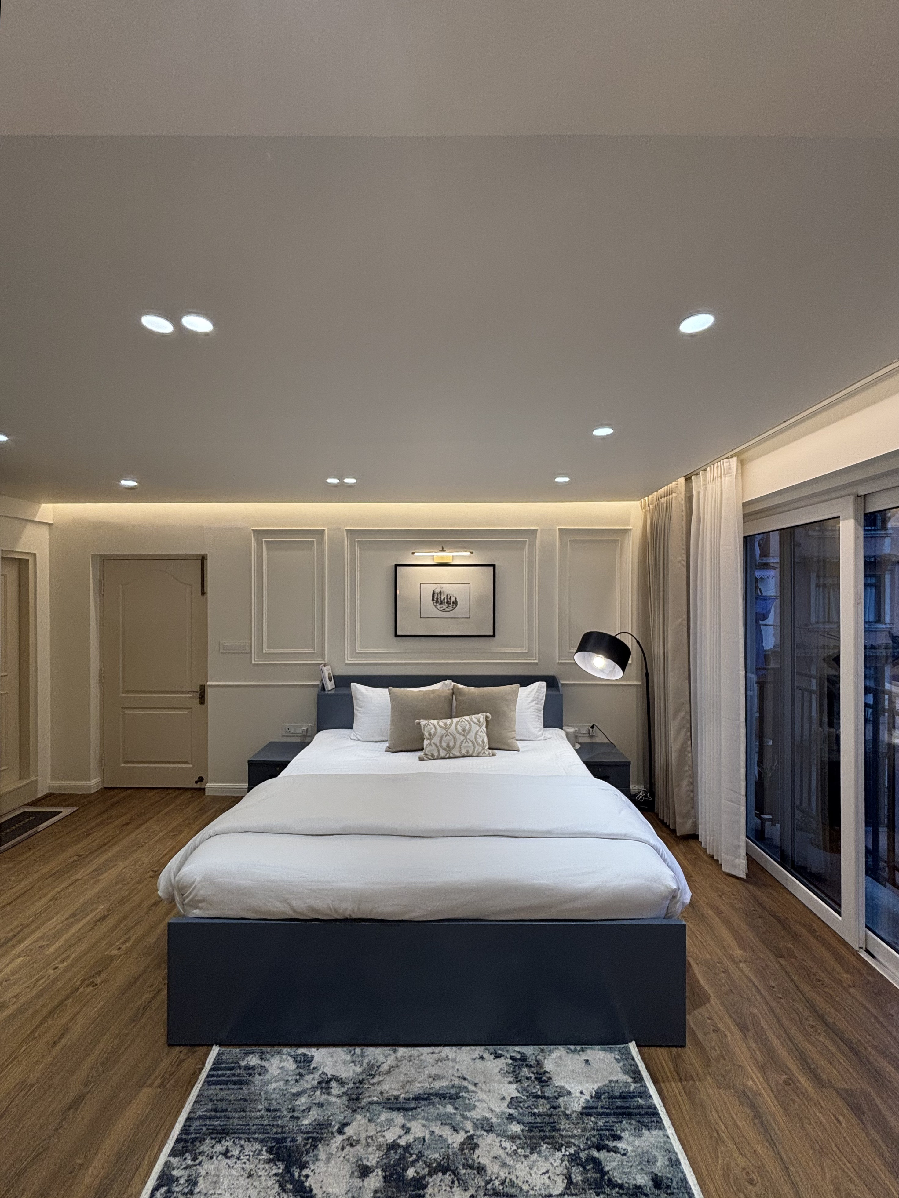 A well kept 2.5 bedroom apartment five minutes from Mall Road with a proper Kanchenjunga view straight from the bedroom balcony. The room is spacious with an attached washroom, steam bath, heaters, fast WiFi, and big windows that bring in mountain light. It’s simple, clean, modern, and quiet.